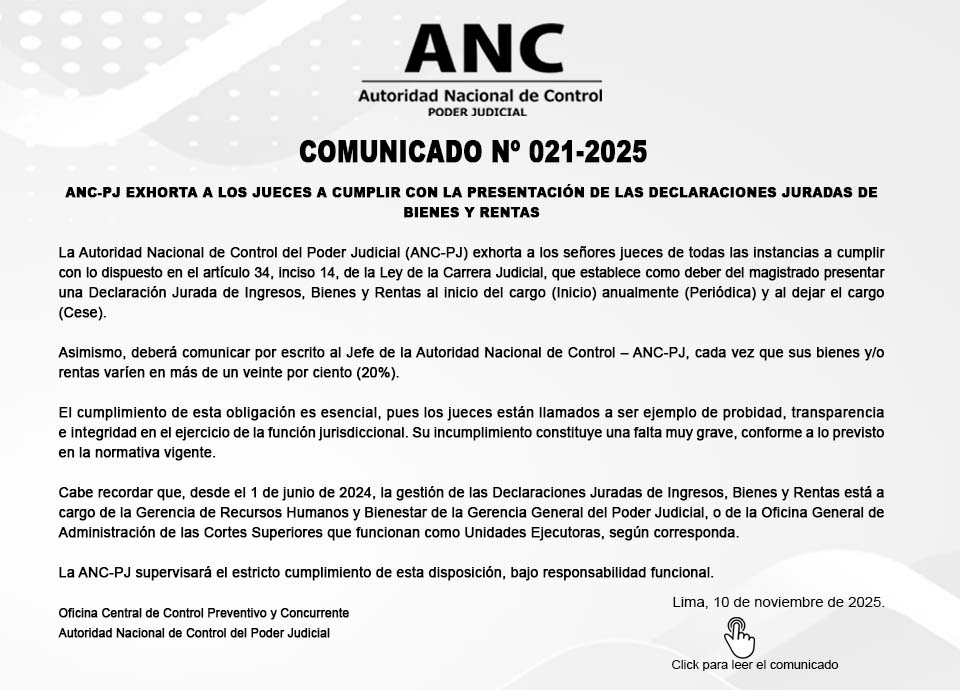 El Dr. Roberto Alejandro Palacios Bran fue elegido por unanimidad por el Pleno de la Junta Nacional de Justicia (JNJ) como jefe de la Autoridad Nacional de Control del Poder Judicial (ANC-PJ), previo concurso público de méritos.