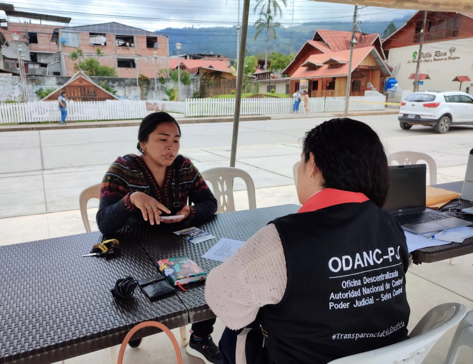 La Campaña itinerante "La Queja que mejora la justicia", presidida por la Jefa de la ODANC de la Corte Superior de Justicia de la Selva Central, Dra. Jenny Maribel Bazán Escalante, llegó al distrito de Villa Rica, con la finalidad de recepcionar quejas y denuncias de los pobladores, respecto de sus expedientes tramitados en este distrito judicial, quienes se acercaron al frontis de la Municipalidad Distrital de Villa Rica, para posteriormente ser absueltas en el Juzgado in situ.