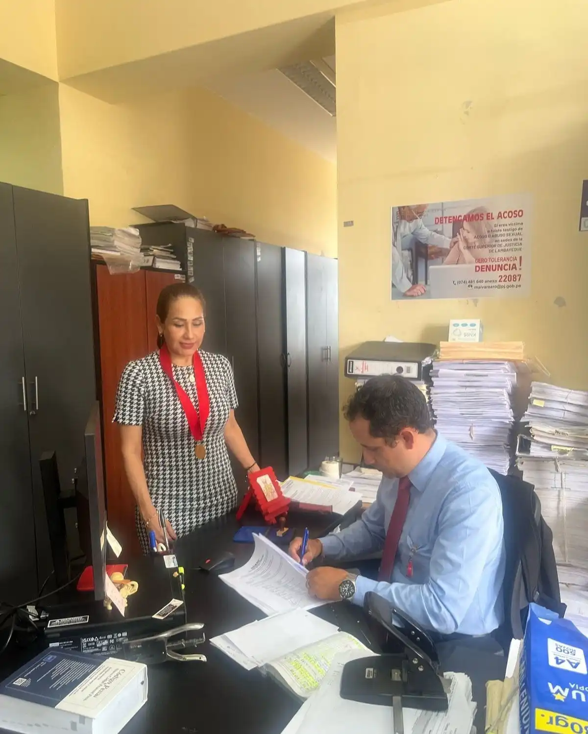 Durante la jornada, verificó la permanencia de los jueces y personal jurisdiccional en sus despachos; así como, el uso correcto de insignias oficiales y el cumplimiento de las metas de producción establecidas por el Consejo Ejecutivo del Poder Judicial.