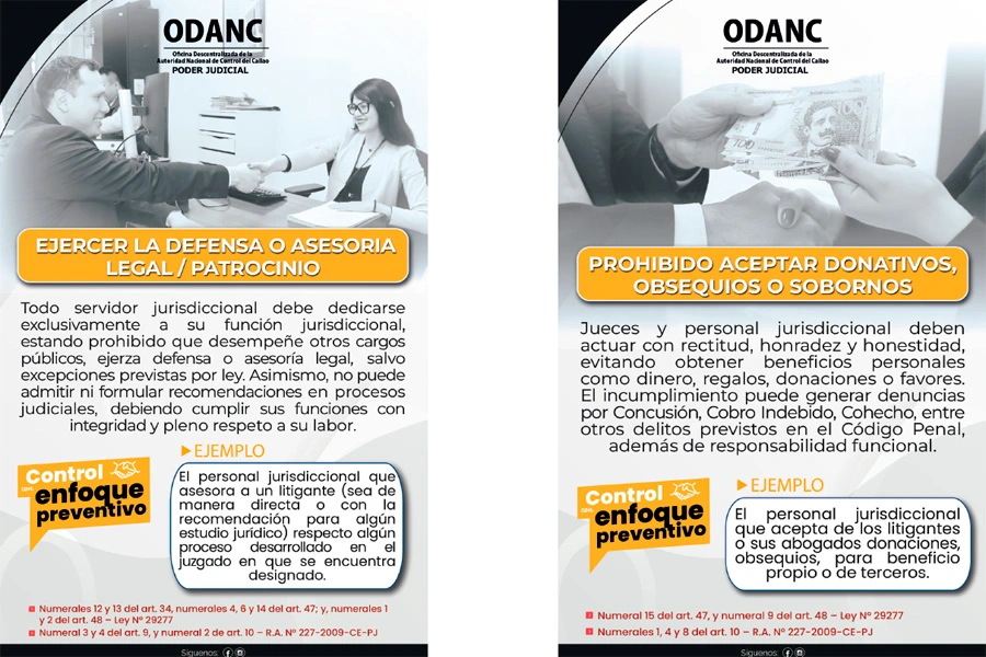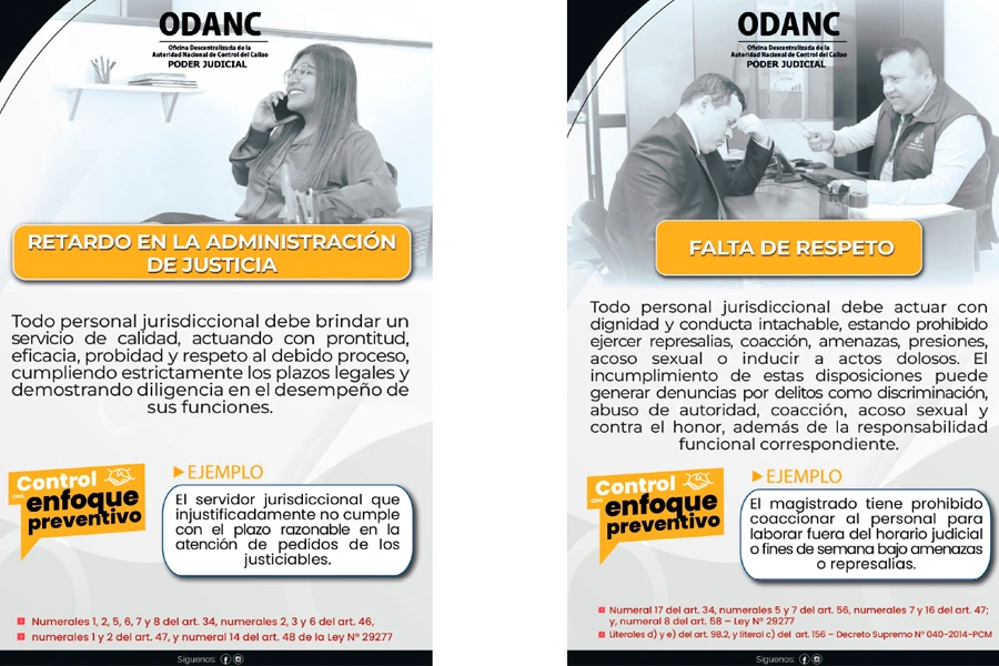Estos materiales difunden mensajes que destacan que la función de la ANC-PJ no es sancionar, sino prevenir y corregir comportamientos antes de que generen perjuicios, así como promover la transparencia, la ética y el cumplimiento del deber funcional entre jueces y servidores judiciales.