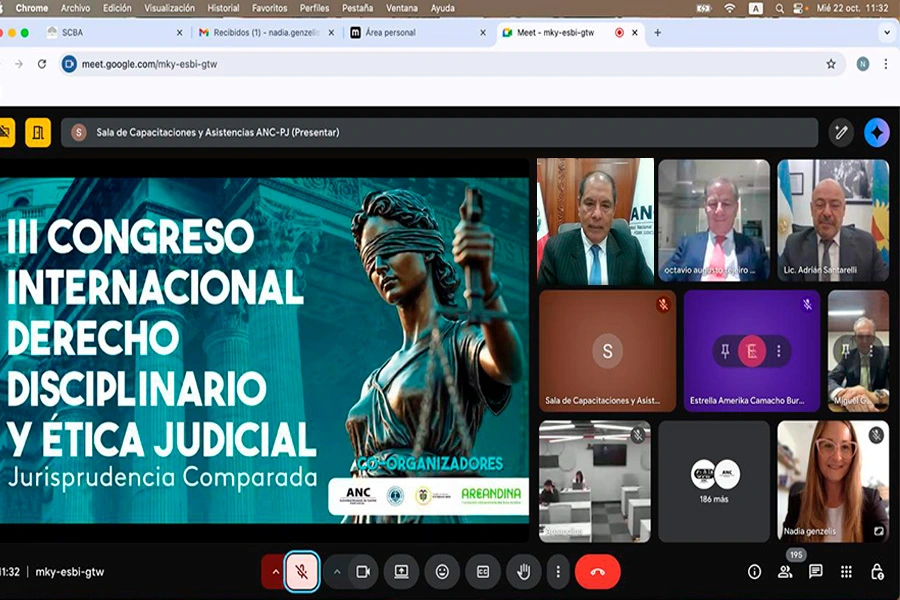 Este congreso se desarrolla de manera virtual del 22 al 24 de octubre de 2025, con la participación de magistrados, académicos, investigadores y servidores judiciales de diversos países, con el propósito de promover el intercambio de experiencias y buenas prácticas en materia de derecho disciplinario, ética judicial y jurisprudencia comparada. En la jornada de hoy participaron cerca de 300 asistentes provenientes de los países coorganizadores.