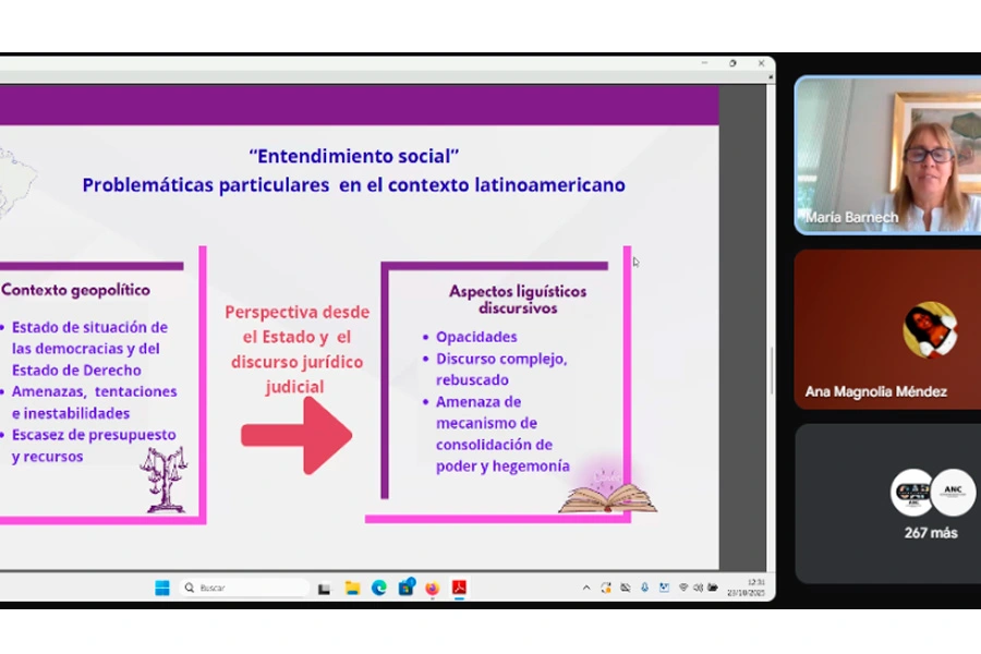 La doctora María Cecilia Barnech Cuervo, docente de la Universidad Católica del Uruguay e integrante del Grupo de Investigación GRIDELuy, presentó la ponencia “Lenguaje jurídico claro: una manifestación necesaria de la ética y responsabilidad judiciales”.