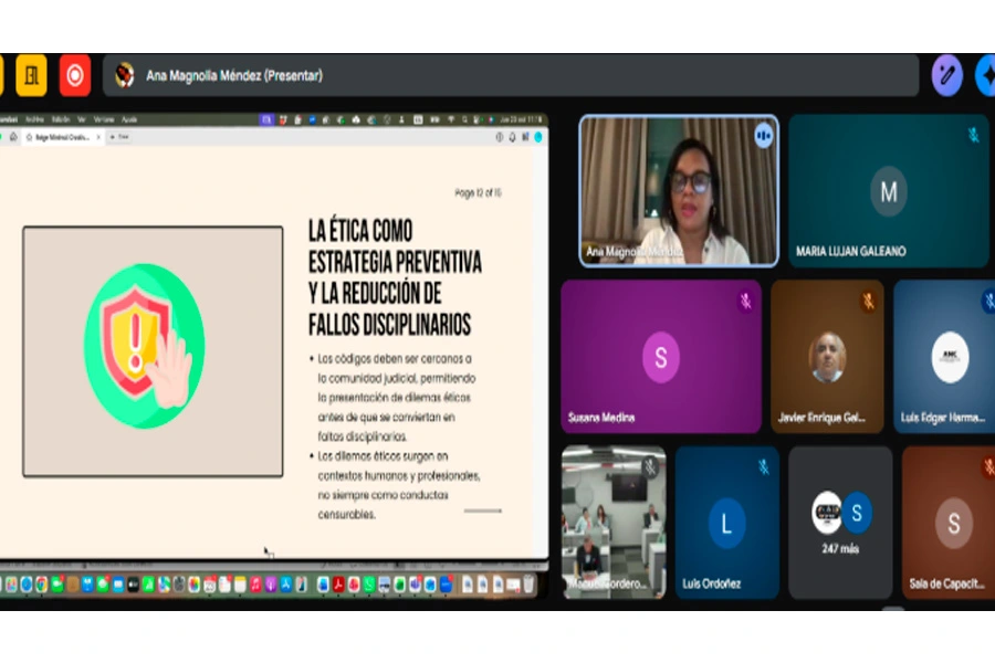 Seguidamente, la doctora Ana Magnolia Méndez Cabrera, jueza del Tribunal Superior de Tierras del Departamento Central de la República Dominicana, desarrolló el tema “Más allá del castigo: ética judicial como estrategia preventiva en el Poder Judicial de la República Dominicana”.