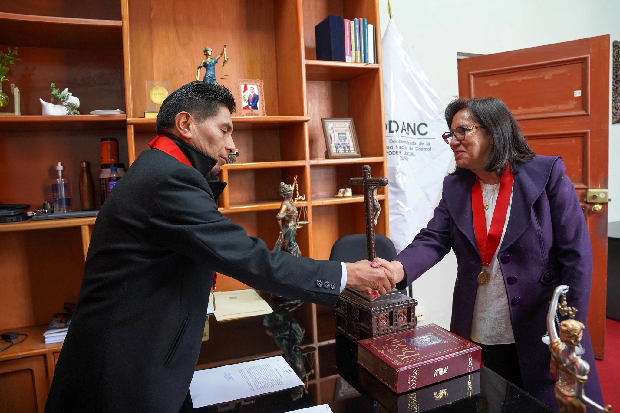 El jefe de la Oficina Descentralizada de la Autoridad Nacional de Control del Poder Judicial (ODANC) Cusco, doctor Rolando Ttito Quispe, tomó juramento a la jueza superior titular Dina Meza Monge, quien asumió oficialmente funciones como responsable de la Unidad de Sanción y Apelación.