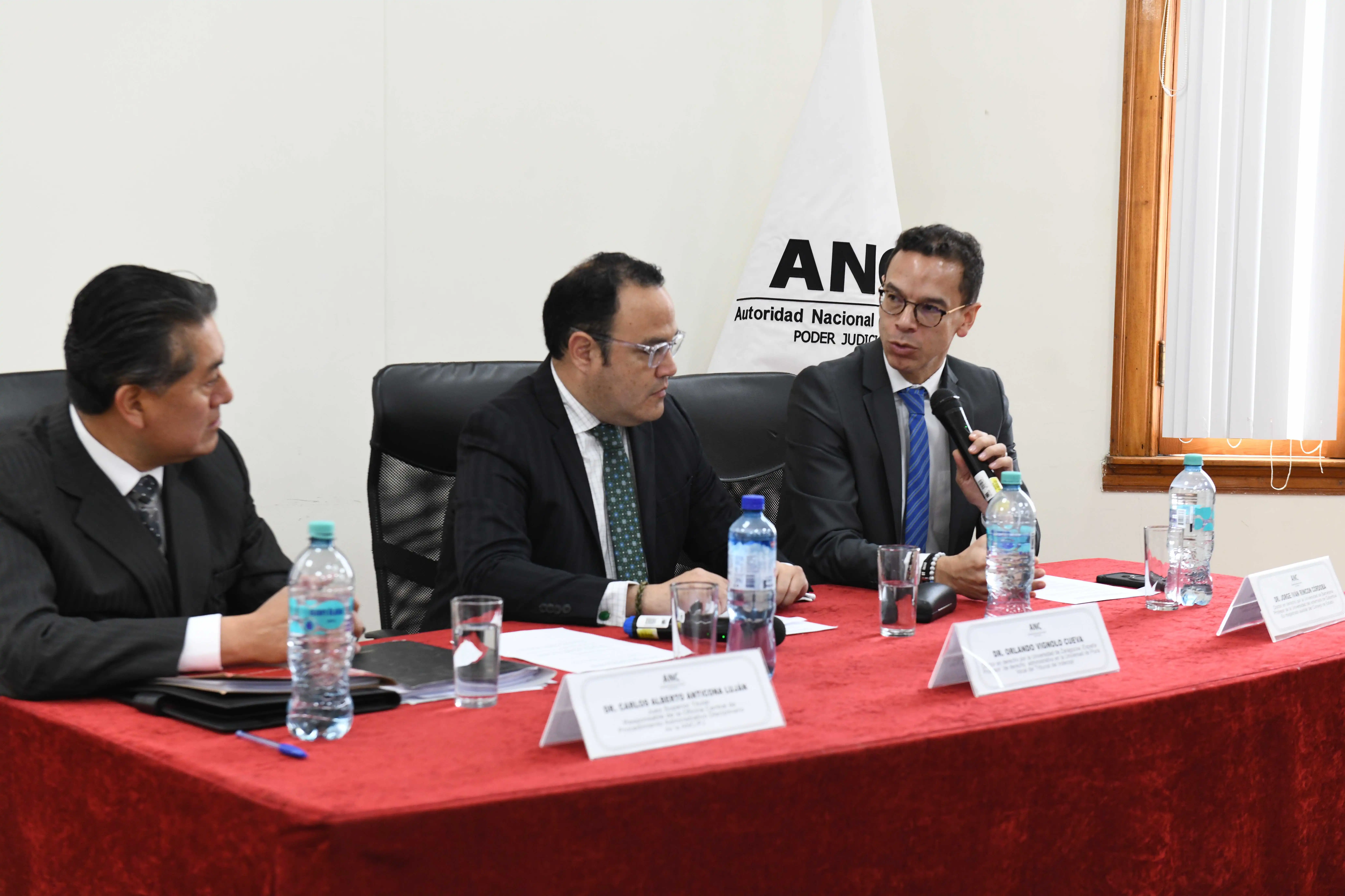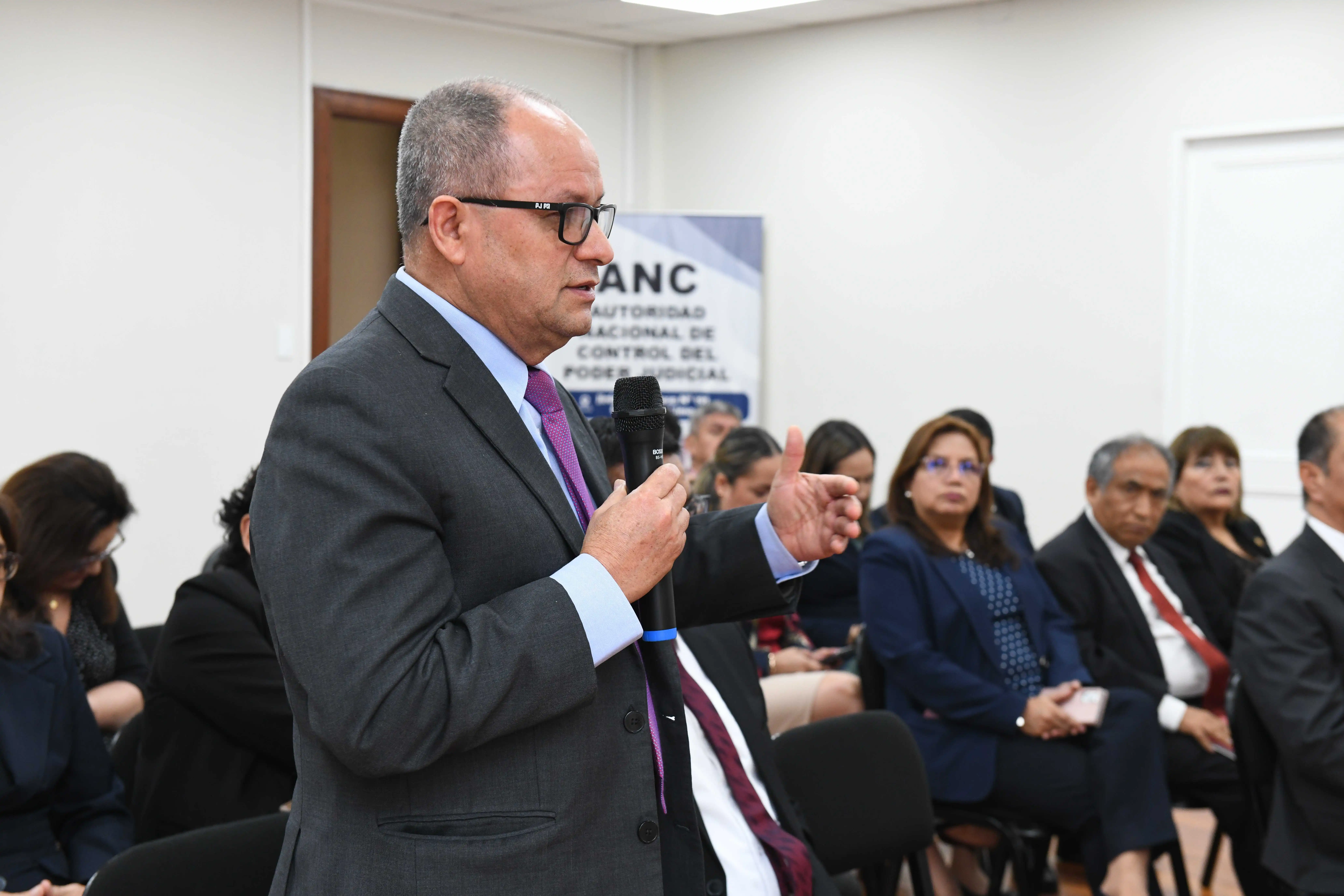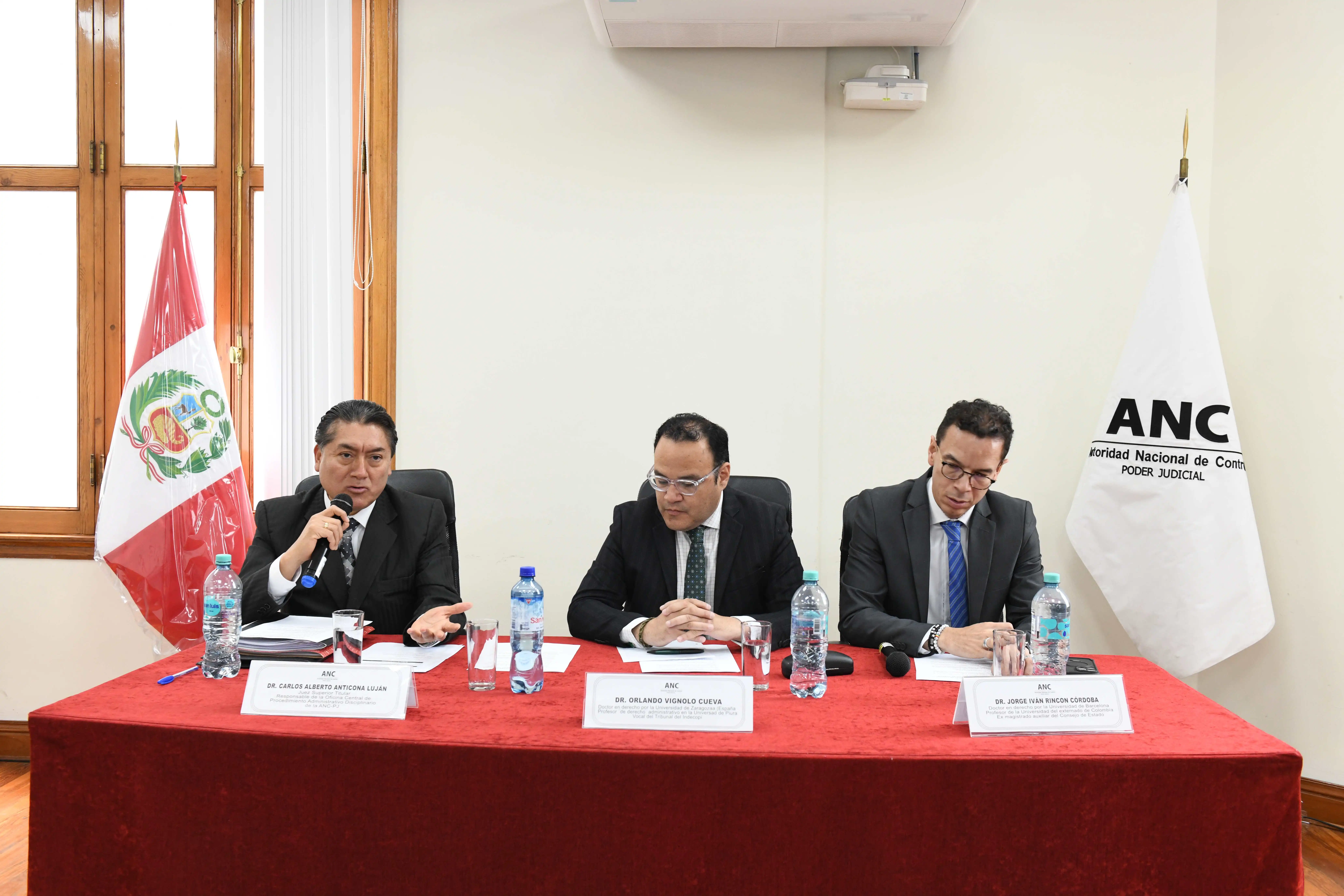 El panel estuvo conformado por Jorge Iván Rincón Córdoba, doctor en Derecho por la Universidad de Barcelona y profesor de la Universidad Externado de Colombia y por el doctor Carlos Anticona Luján, juez superior y responsable de la Oficina Central del Procedimiento Administrativo Disciplinario de la ANC-PJ, en representación del Perú. La moderación estuvo a cargo del doctor Orlando Vignolo Cueva, profesor de la Universidad de Piura y vocal del Tribunal del Indecopi.