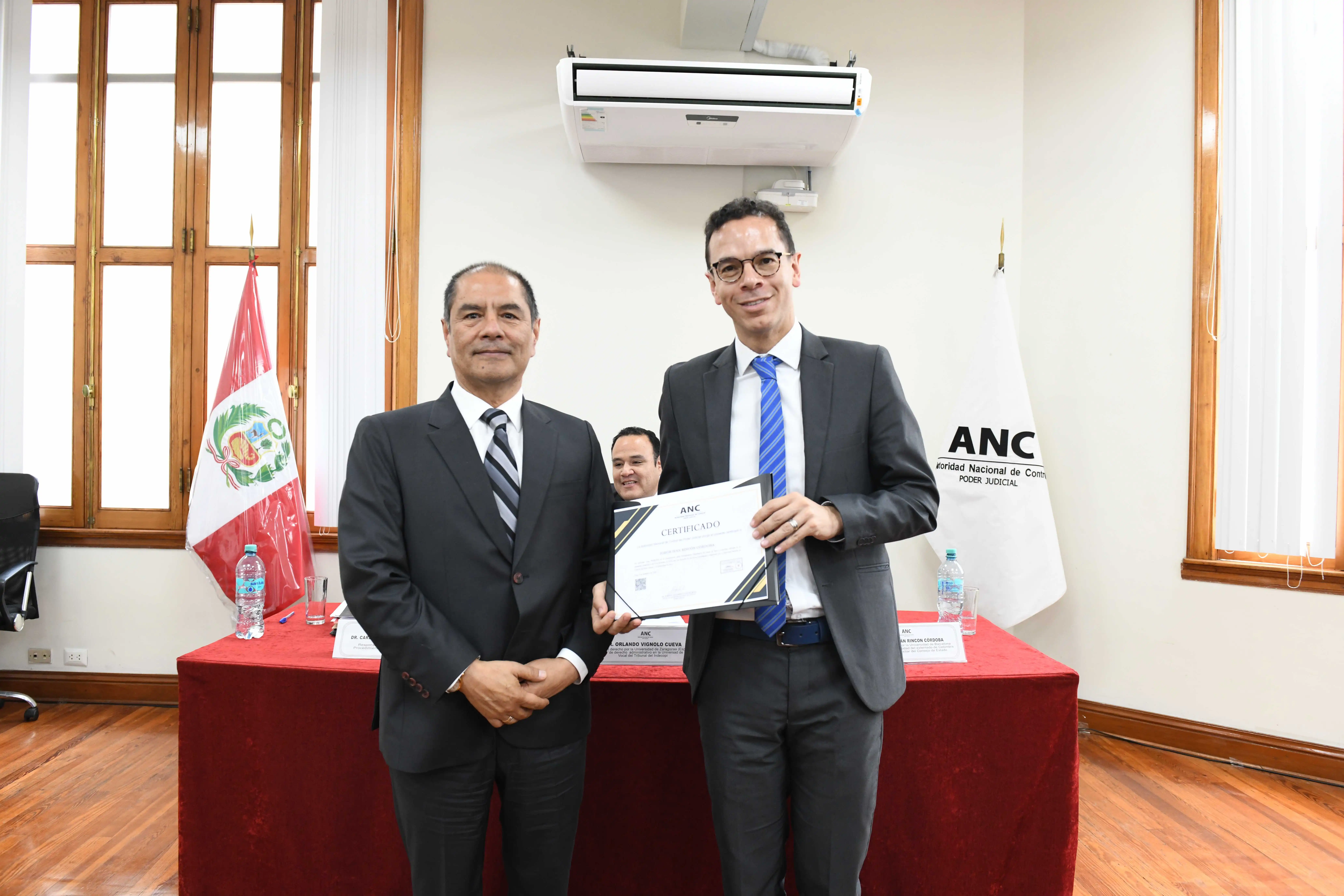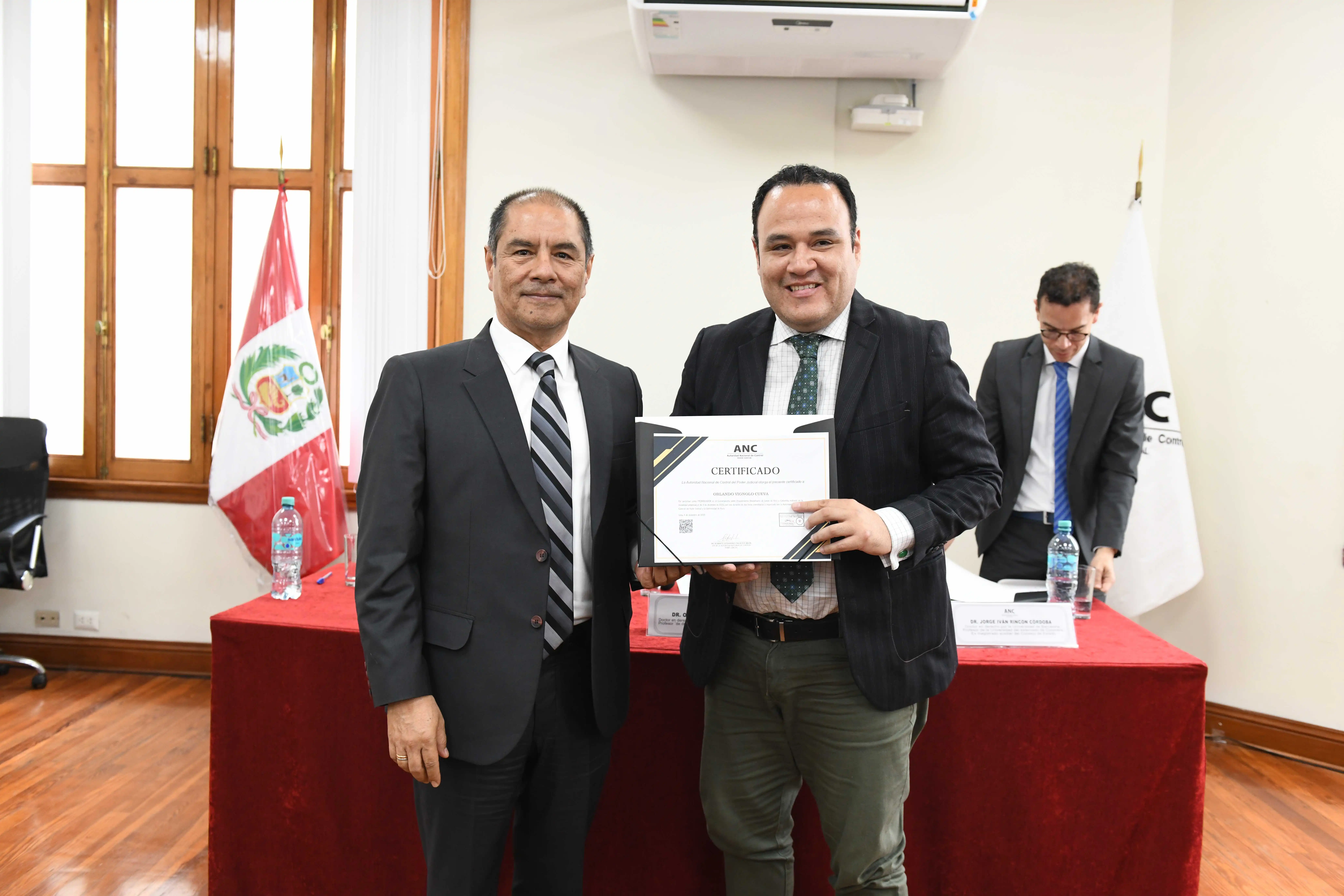 Al concluir la jornada, el jefe nacional de la ANC-PJ, Roberto Palacios Bran, entregó certificados a los panelistas en reconocimiento a su aporte académico.