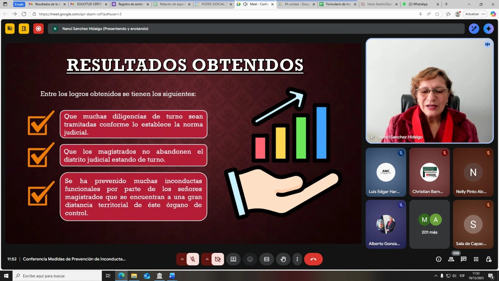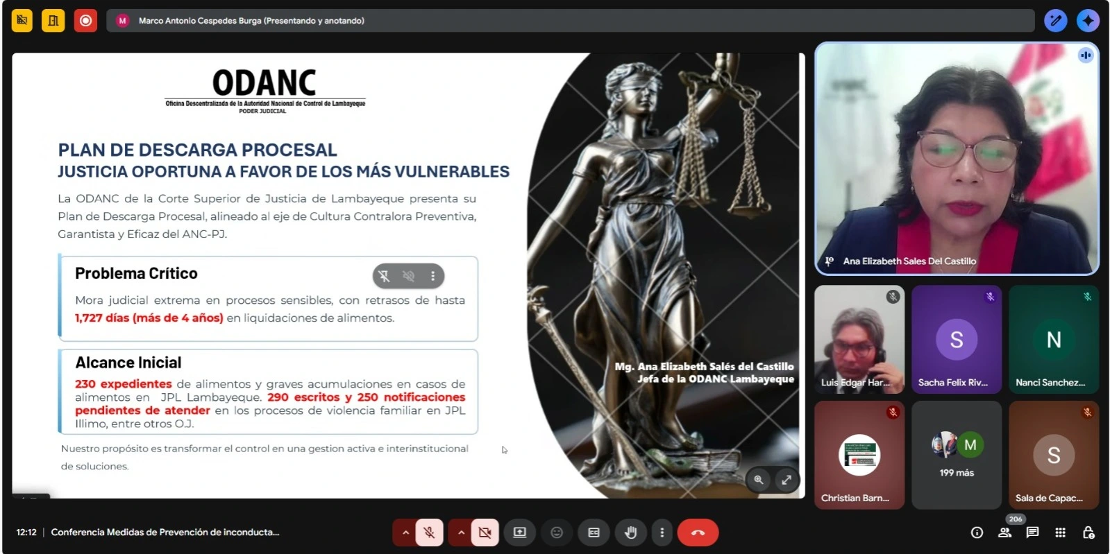 La conferencia permitió difundir las medidas preventivas adoptadas por la ANC-PJ durante 2025 y las buenas prácticas desarrolladas en distintos distritos judiciales, orientadas a fortalecer el control funcional y mejorar la eficiencia del servicio de justicia.