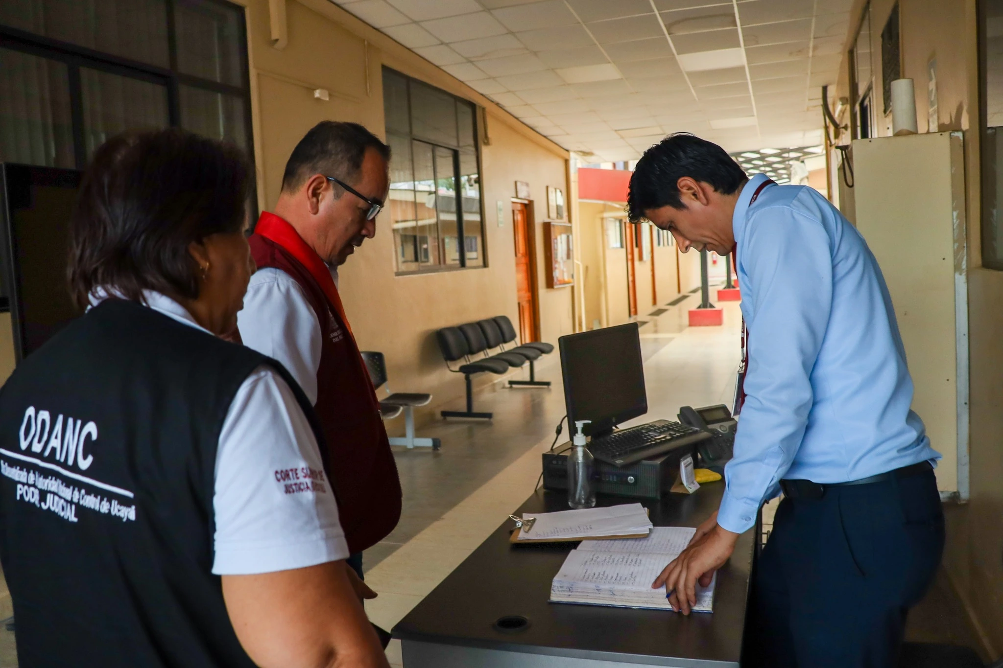 Durante la visita se supervisó la labor de los magistrados Juan José Gama Navarro, juez del Primer Juzgado de Paz Letrado de Familia de Coronel Portillo; Silvana Liselly Salazar Paz, jueza del Juzgado Transitorio Especializado en Extinción de Dominio; y Juan Zevallos Basualdo, juez del Primer Juzgado Especializado en Familia de Coronel Portillo.