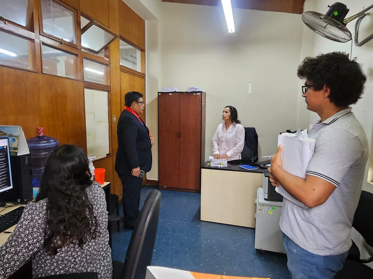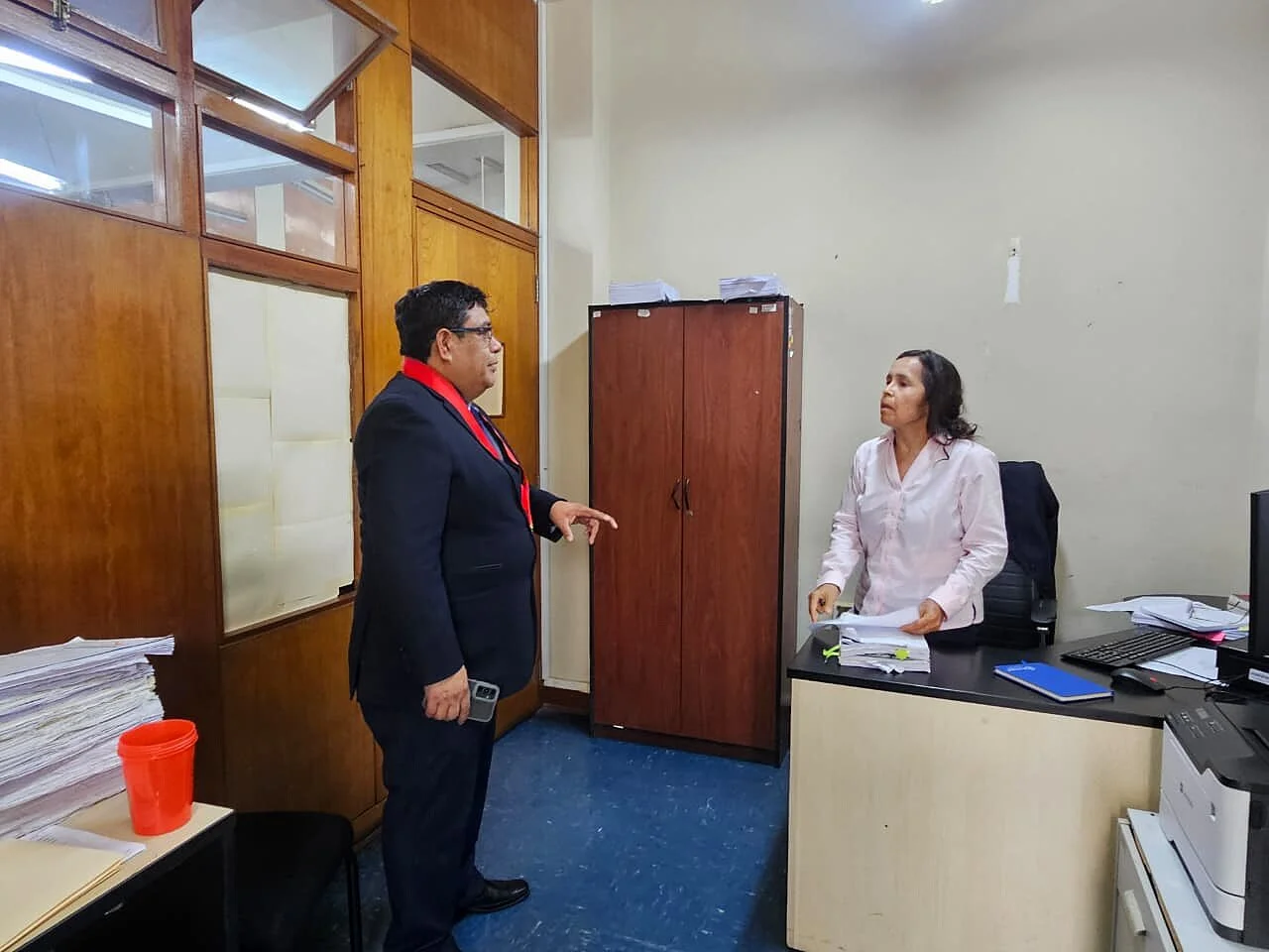 Posteriormente, el magistrado de control efectuó una visita de permanencia a los jueces del Módulo Corporativo Civil, ubicado en la sede judicial de Bolívar, en el Centro Histórico de Trujillo. La diligencia se desarrolló entre las 16:15 y 16:45 horas, periodo en el que se supervisó la atención brindada a usuarios, abogados y litigantes.