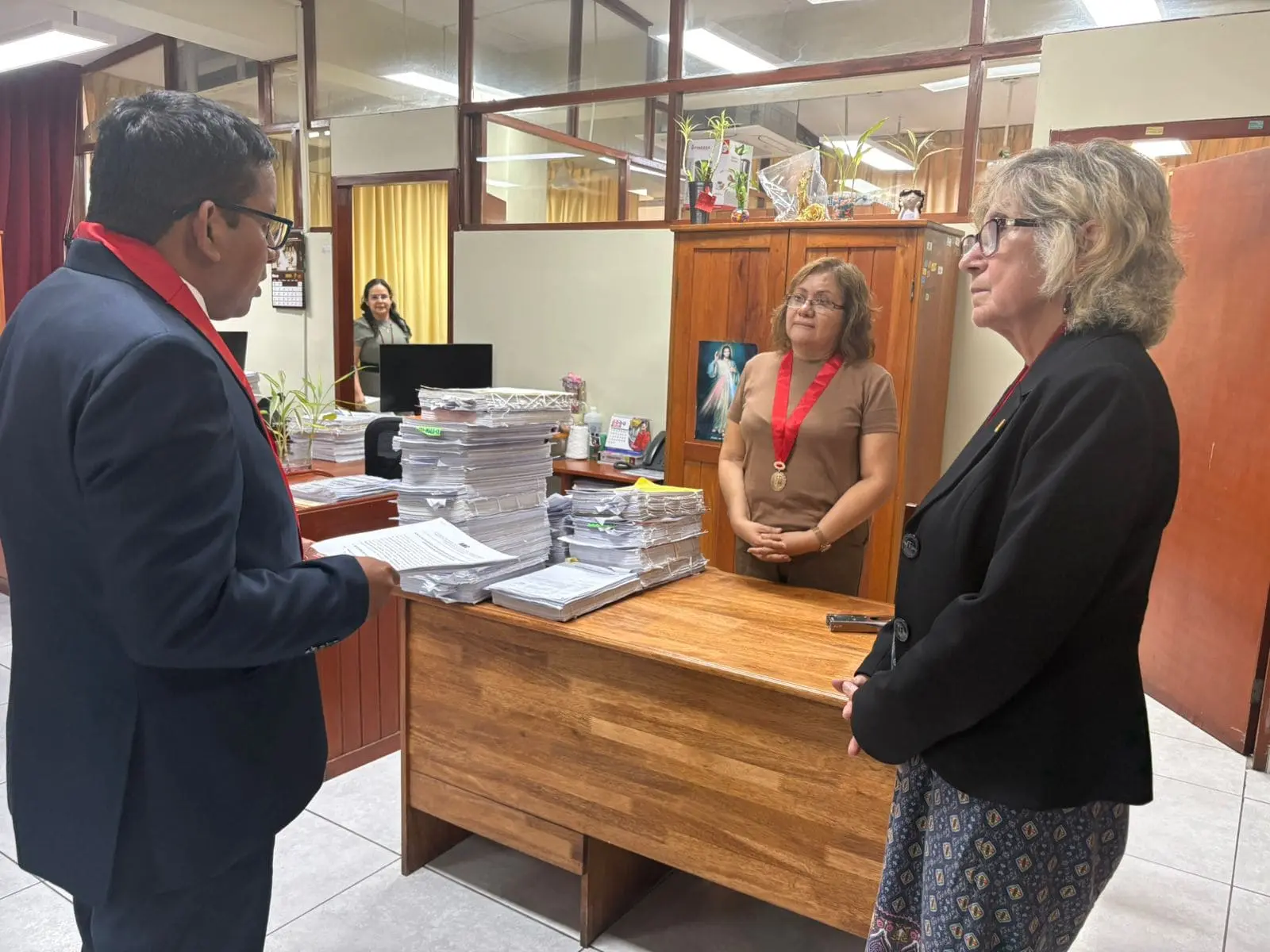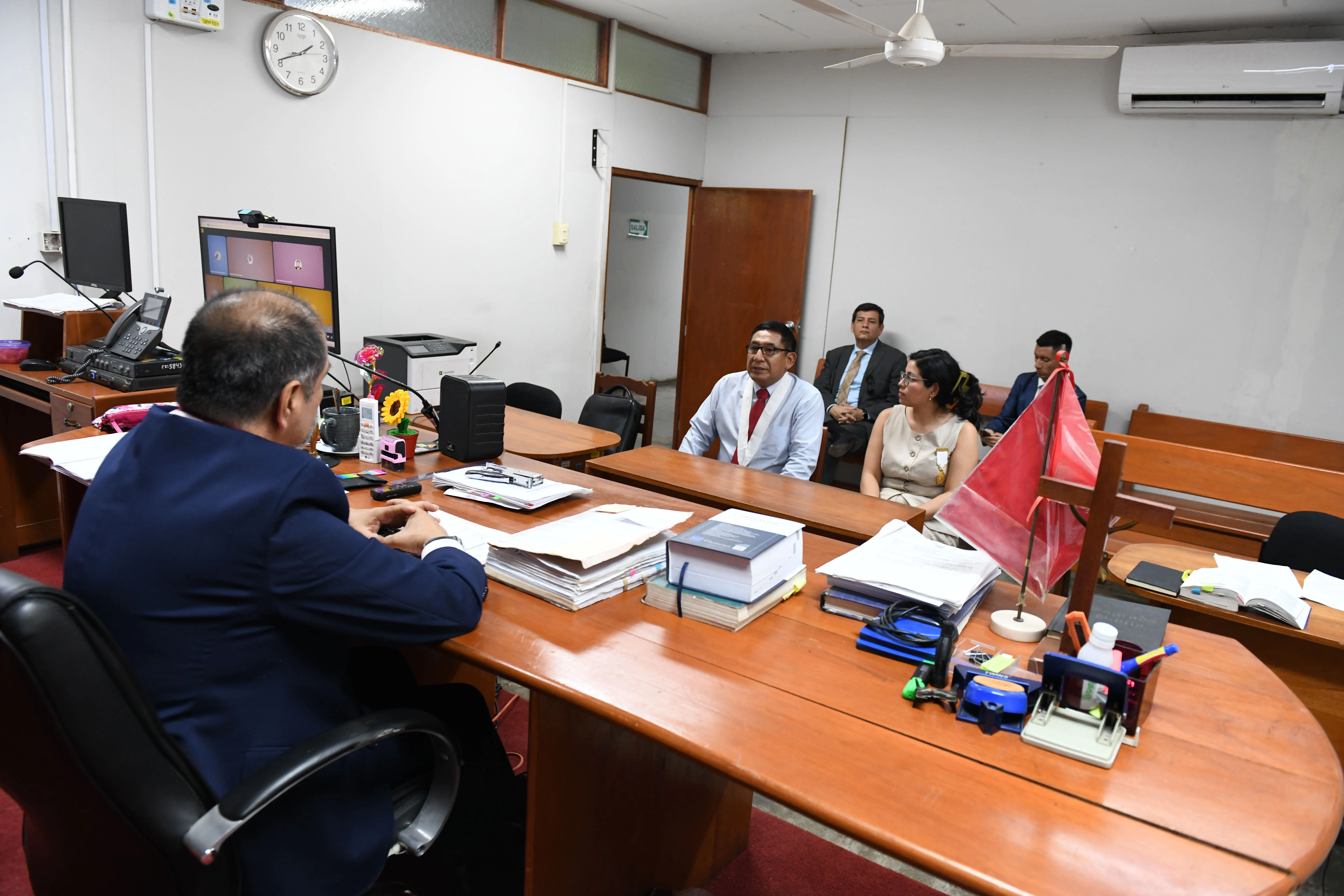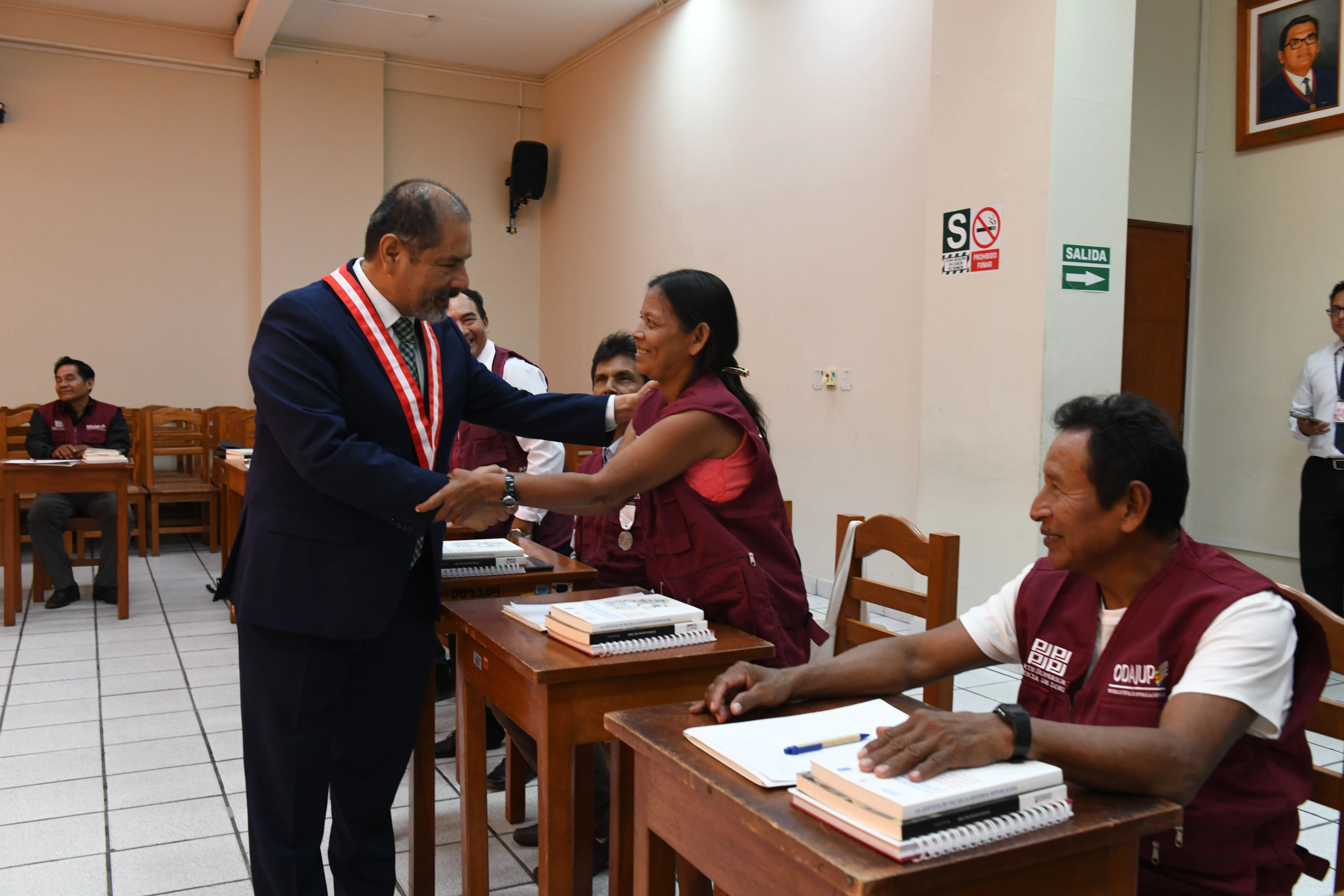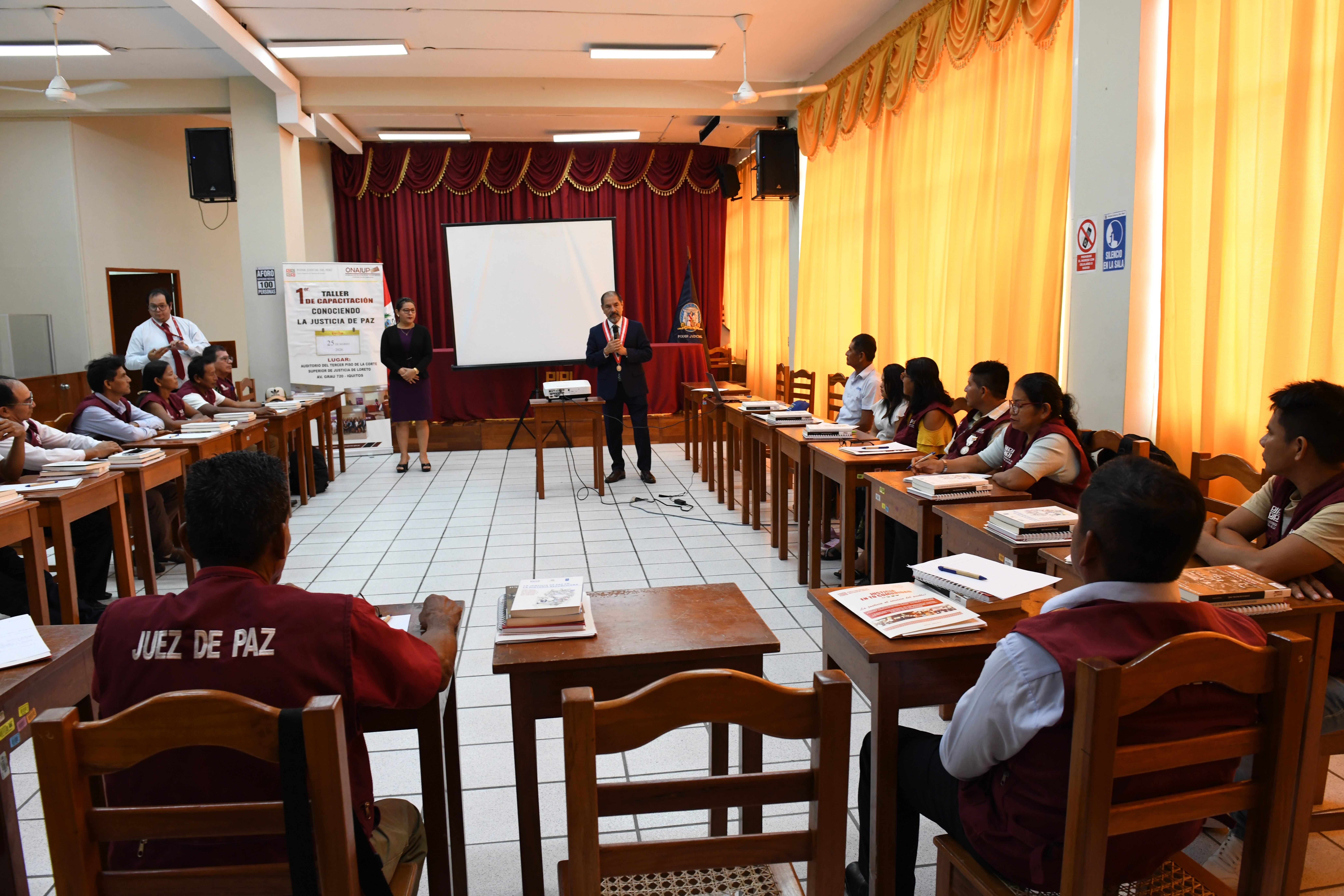 Durante su permanencia en la sede central de la Corte de Loreto, el jefe de la ANC-PJ también se dirigió a jueces de paz que participaban en una capacitación organizada por la Oficina Distrital de Apoyo a la Justicia de Paz de Loreto, donde destacó el rol que tienen en la resolución pacífica de conflictos en la comunidad.