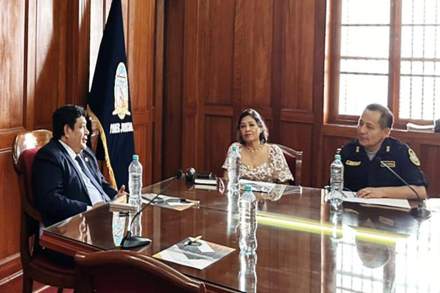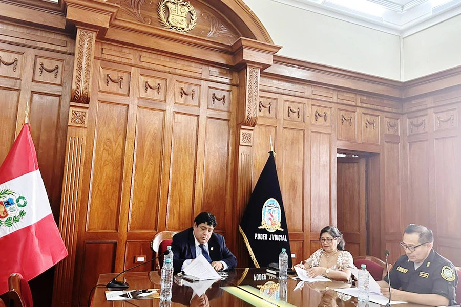 La sesión se desarrolló en la Sala de Acuerdos de la Sala Plena de la Corte Superior de Justicia de La Libertad, sede judicial de Bolívar, con el propósito de consolidar acciones preventivas conjuntas y de control funcional en el sistema de justicia, así como fortalecer la lucha contra la inseguridad ciudadana.