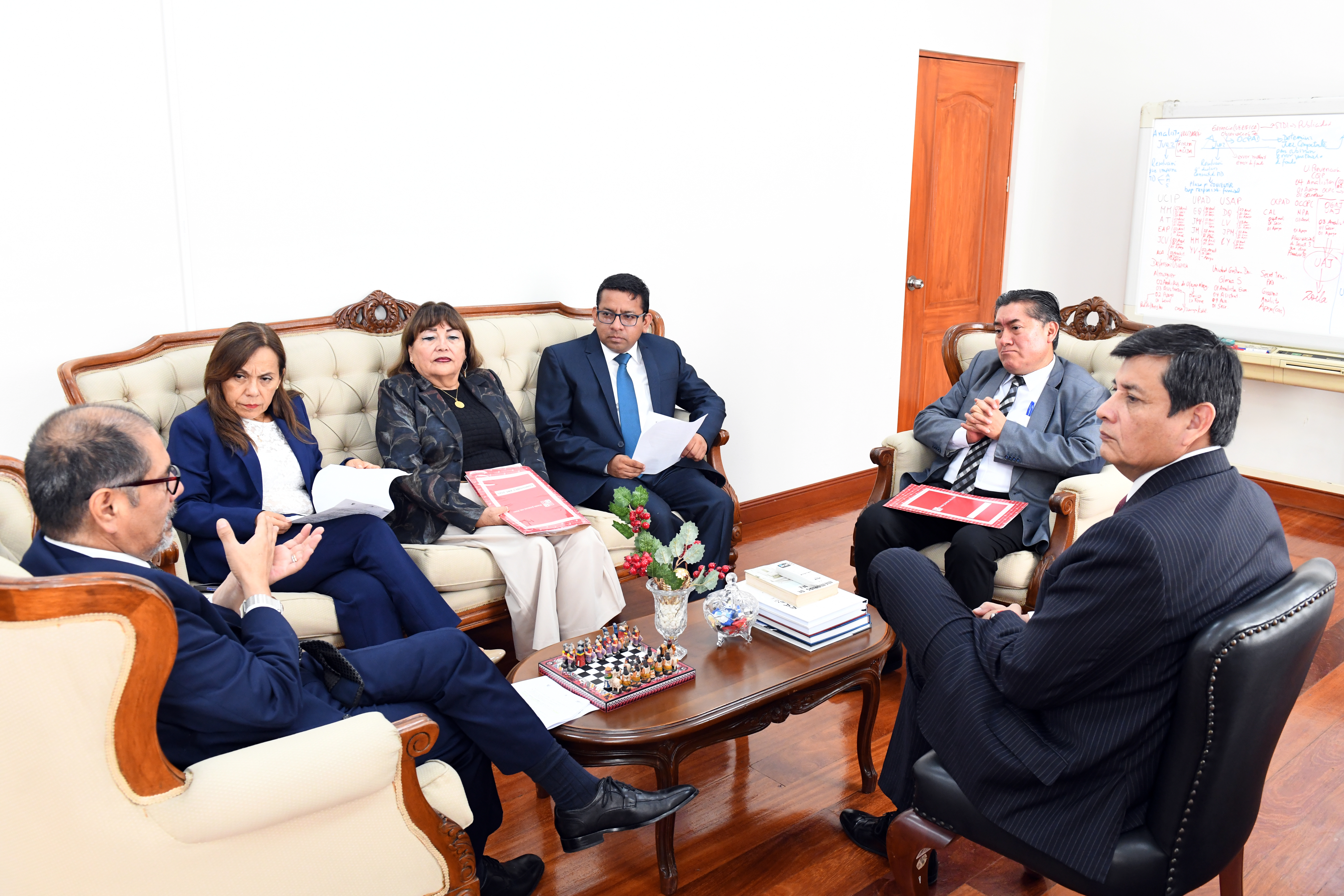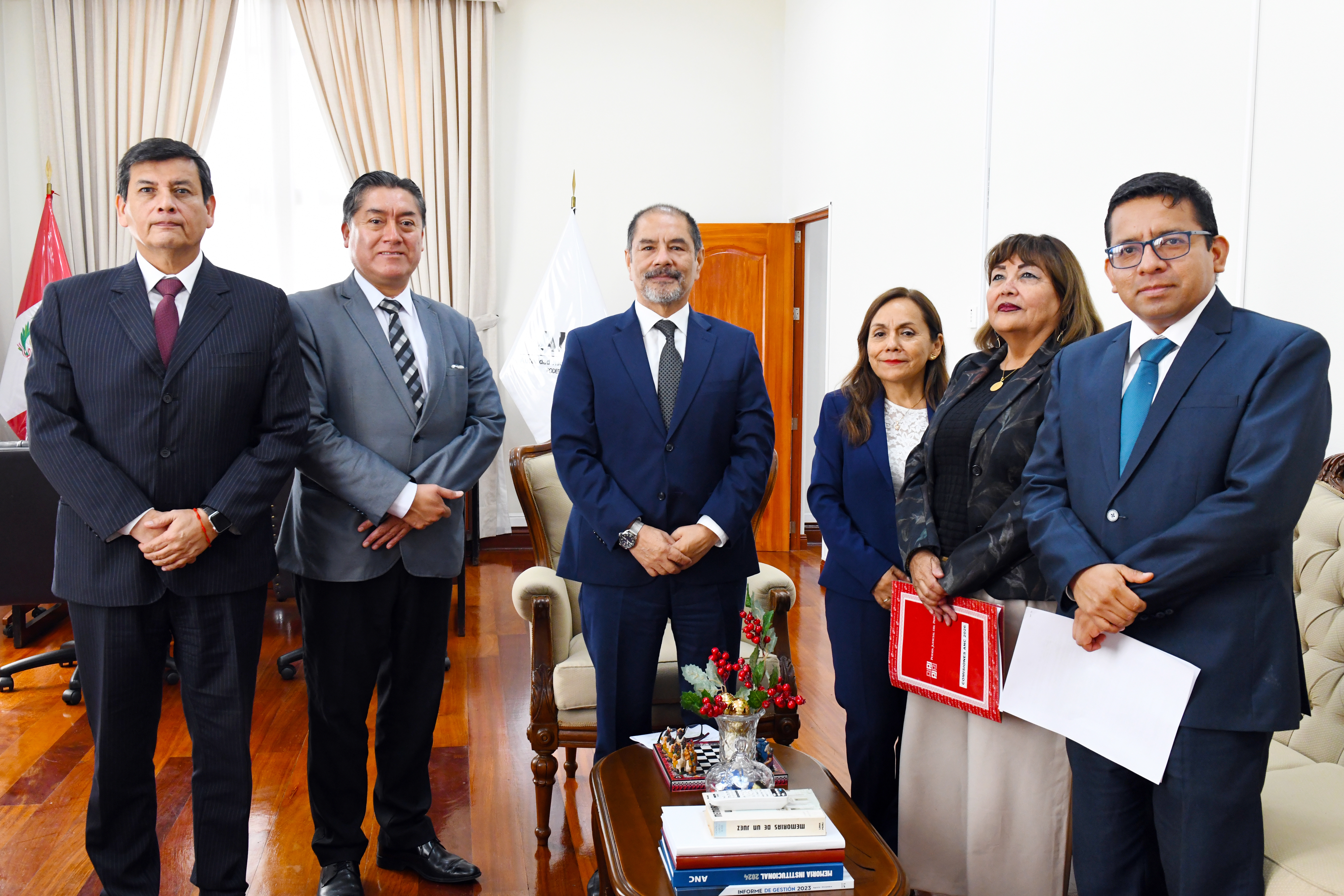 En ese contexto, el titular de la ANC-PJ sostuvo esta mañana una reunión de trabajo con el coordinador general de los equipos, Carlos Anticona Luján; los responsables de los Equipos 1, 2 y 3, Carlos Quiroga Periche, Elizabeth Quispe Mamani y Nelly Pinto Alcarraz, respectivamente; así como con el gerente de Administración, Alfredo Angulo Palma, con la finalidad de alinear acciones y encaminar este proceso de mejora y fortalecimiento institucional.